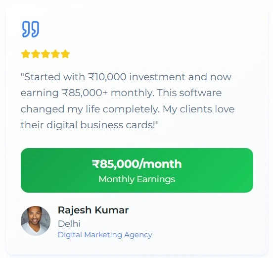 Launch your own digital business card platform help local businesses go digital, 100x Better than Physical Cards, Future-Proof and earn ₹30K to ₹1L/month from home.
